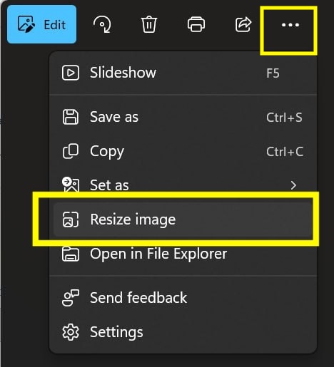 2. Klik tombol … (More) di pojok kanan atas lalu klik Resize