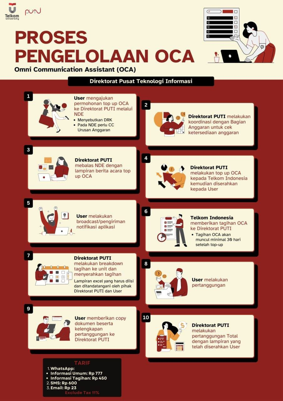 Layanan Top Up Message Broadcast saat ini menggunakan OCA Indonesia. Permintaan penambahan top up dapat diajukan melalui Nota Dinas Elektronik (NDE) dengan melampirkan formulir Berita Acara Penambahan Layanan yang memuat: